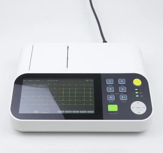 2. Jednoczesne pozyskiwanie 12 odprowadzeń, pełnoekranowy wyświetlacz 12-kanałowych przebiegów EKG. 7-calowy kolorowy ekran, obsługa przyciskami i dotykiem (opcjonalnie).